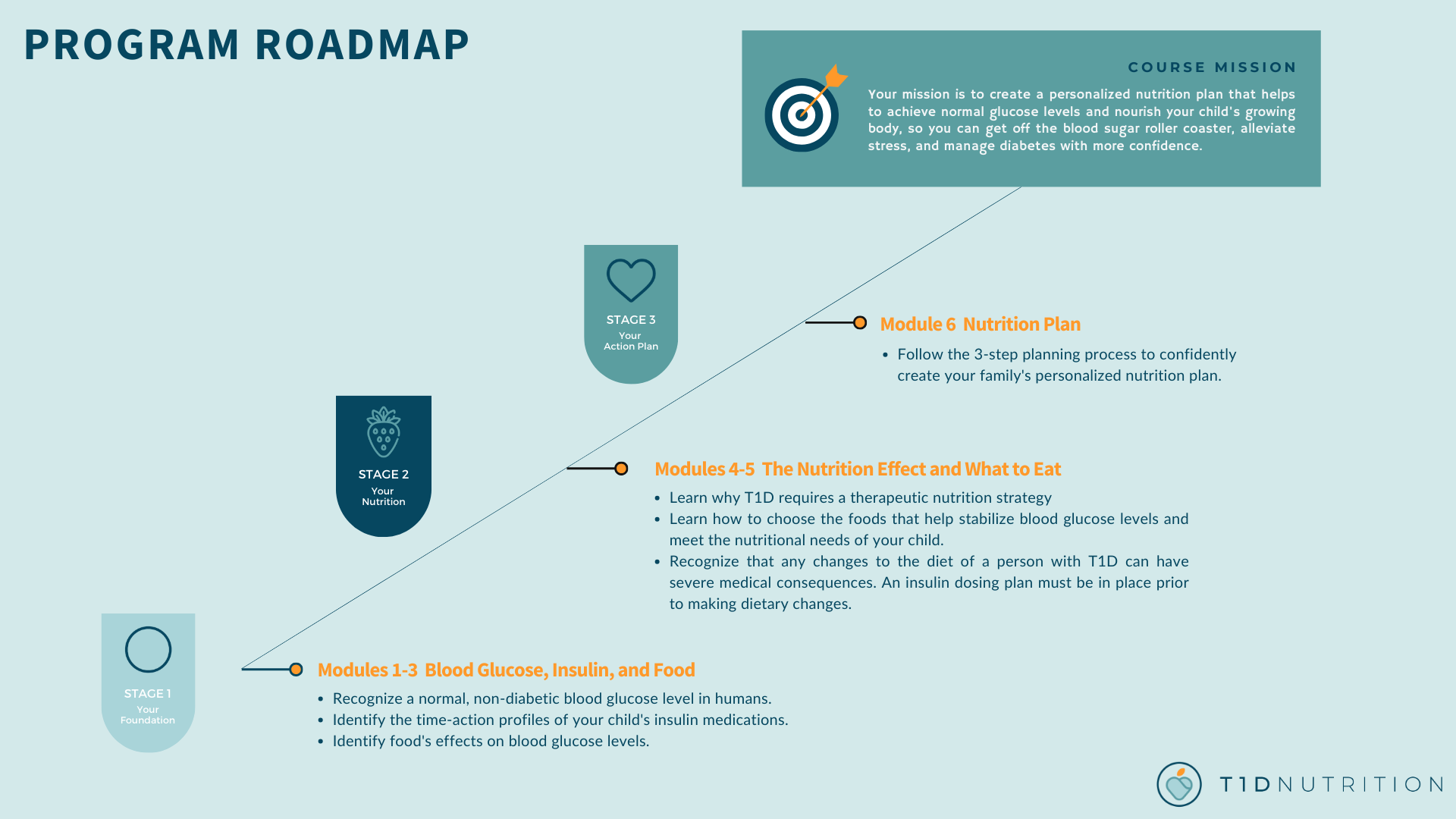 I created a signature program which guides families of children diagnosed with Type 1 diabetes to successfully implement a Therapeutic Carbohydrate Reduction/Low-carb nutrition strategy specifically tailored for the management of Type 1 diabetes, to safely achieve normal blood glucose levels and nourish their child's growing body, so they can reduce the burden of Type 1 diabetes management, alleviate or avoid health complications as a result of elevated blood glucose levels, improve their child's Type 1 diabetes outcomes and quality of life, and guide their child to a brighter, healthier future.