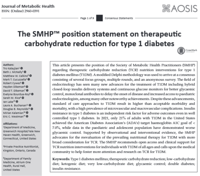 The SMHP™ position statement on therapeutic carbohydrate reduction for type 1 diabetes